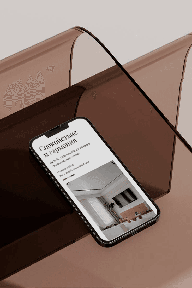 Минималистичный сайт-галерея, где чистая типографика и обилие «воздуха» создают премиальное обрамление для интерьерных проектов, фокусируя внимание на эстетике и деталях реализации.