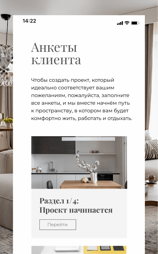 Те площадки, где раньше выкладывались работы, выглядели слишком просто и не передавали атмосферу премиального дизайна. Клиент не видел того самого «дорогого» сервиса еще на этапе знакомства.